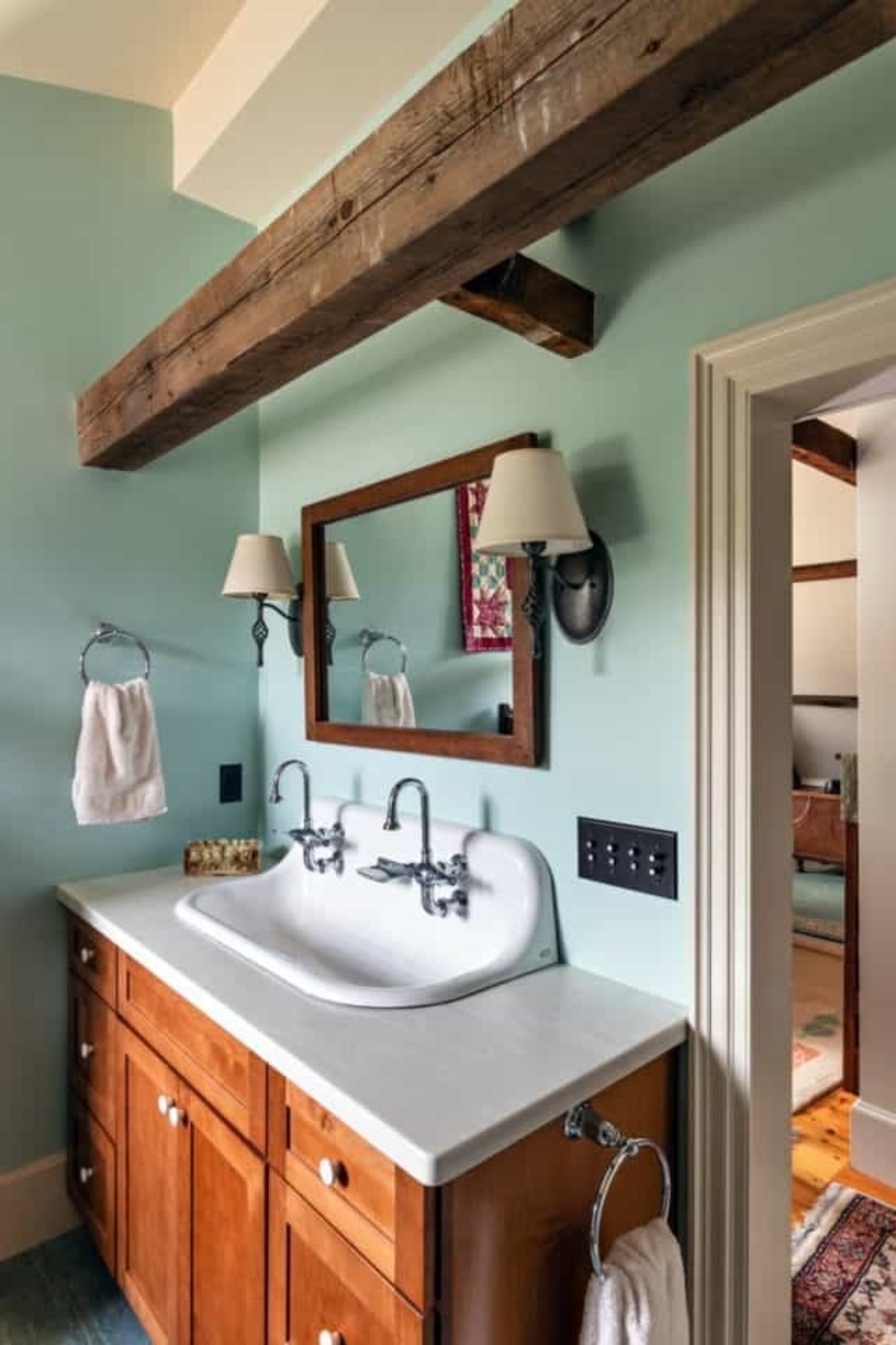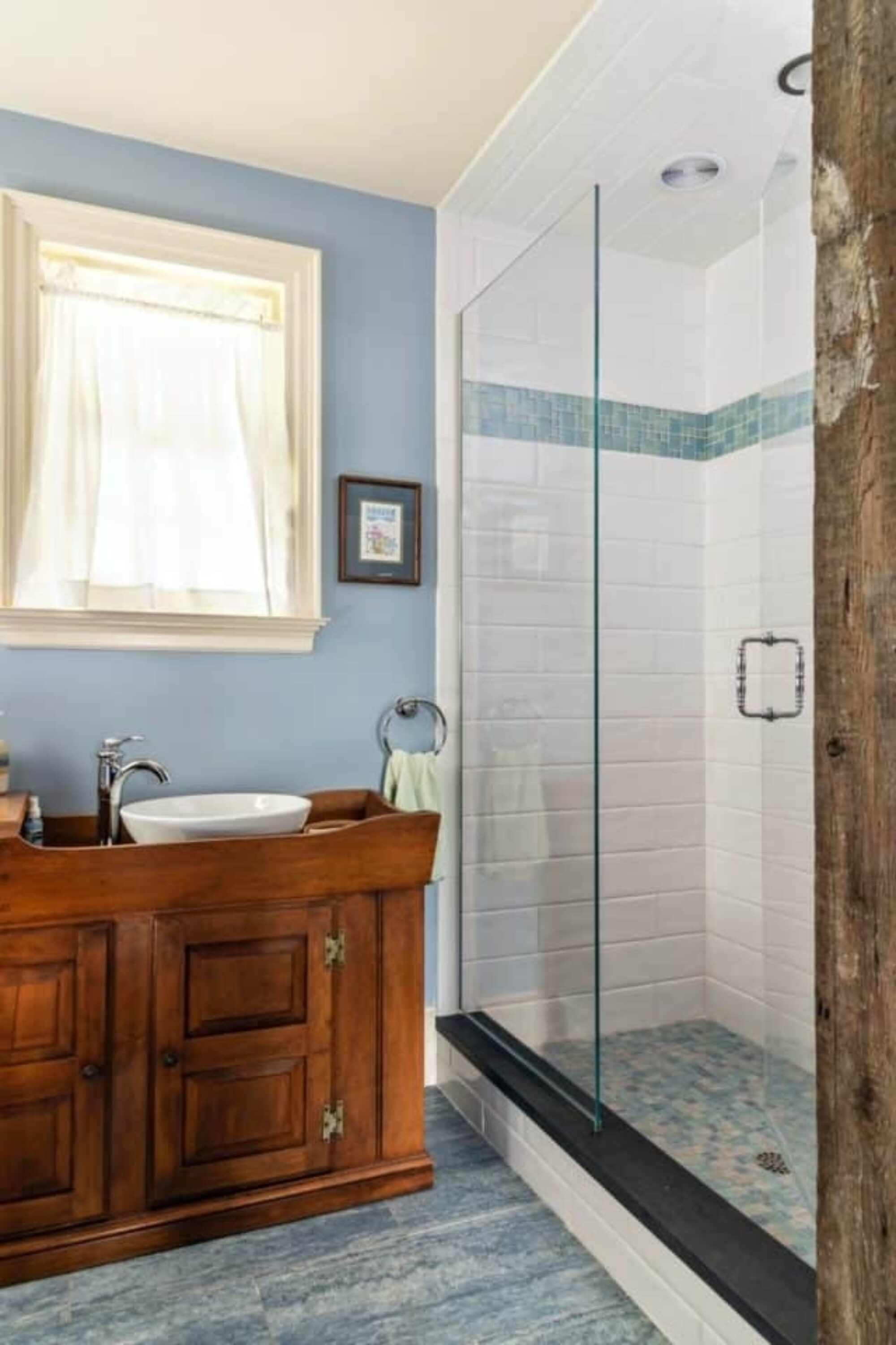 Once lifted, we discovered that the floor frame was beyond saving. The house was left essentially with its original bones and sheathing. We remove all of the exterior trim windows, doors and siding. We constructed a new floor that the original house now sits on. We salvaged the majority of the original interior trim and reproduced new trim for the entire original house and additions.