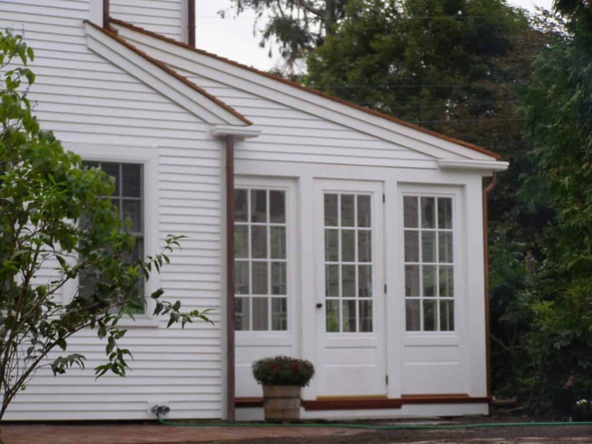 We also replaced the majority of the roof sheathing the exterior trim and applied a cedar roof with wooden gutters
