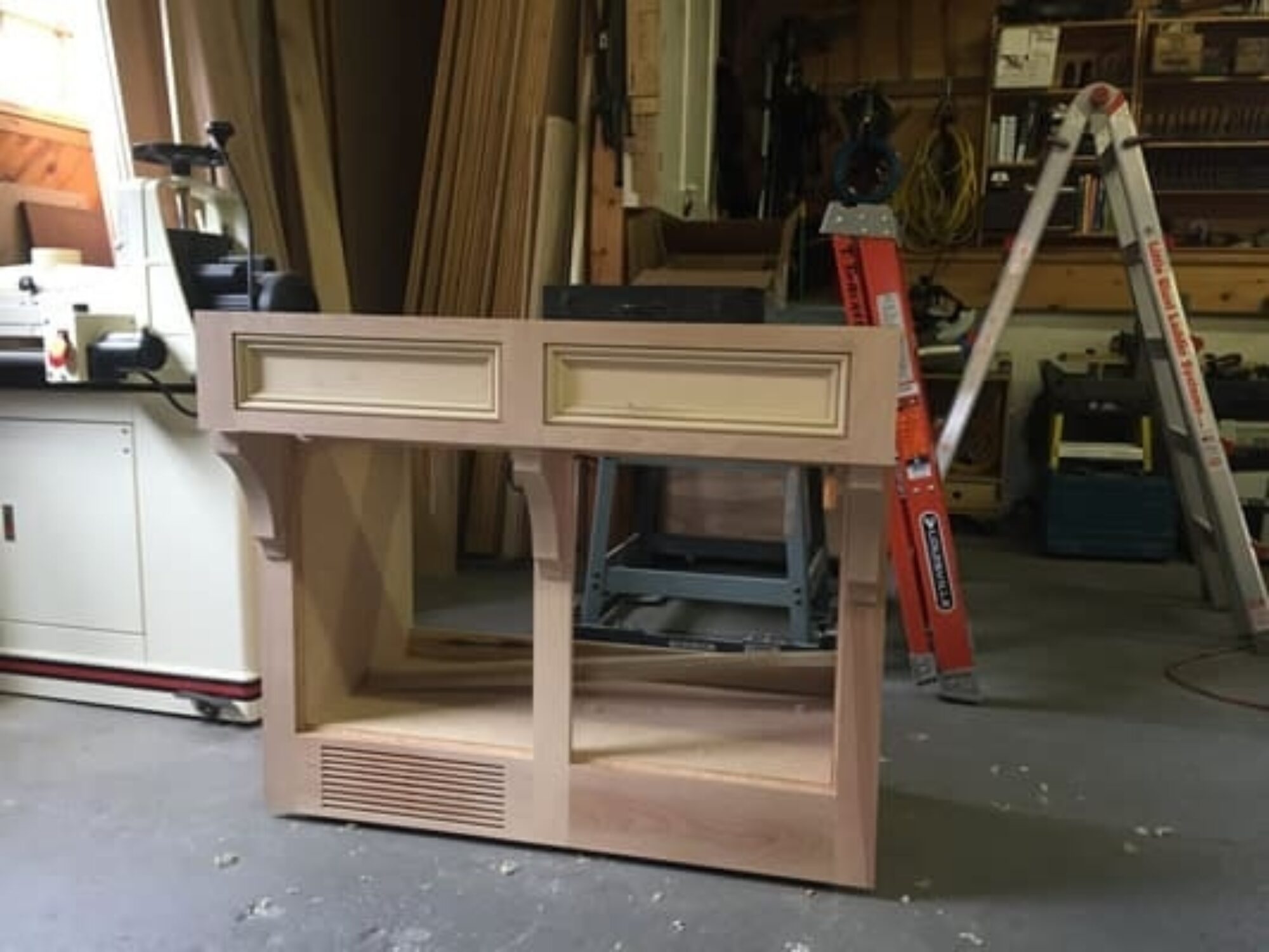 All the interior trim was custom made and installed by us including the mantel piece and many of the cabinets designed by myself. We added multiple porches around the house with beamed and paneled ceilings, a rear deck, and a balcony type deck on the second floor facing the river.
