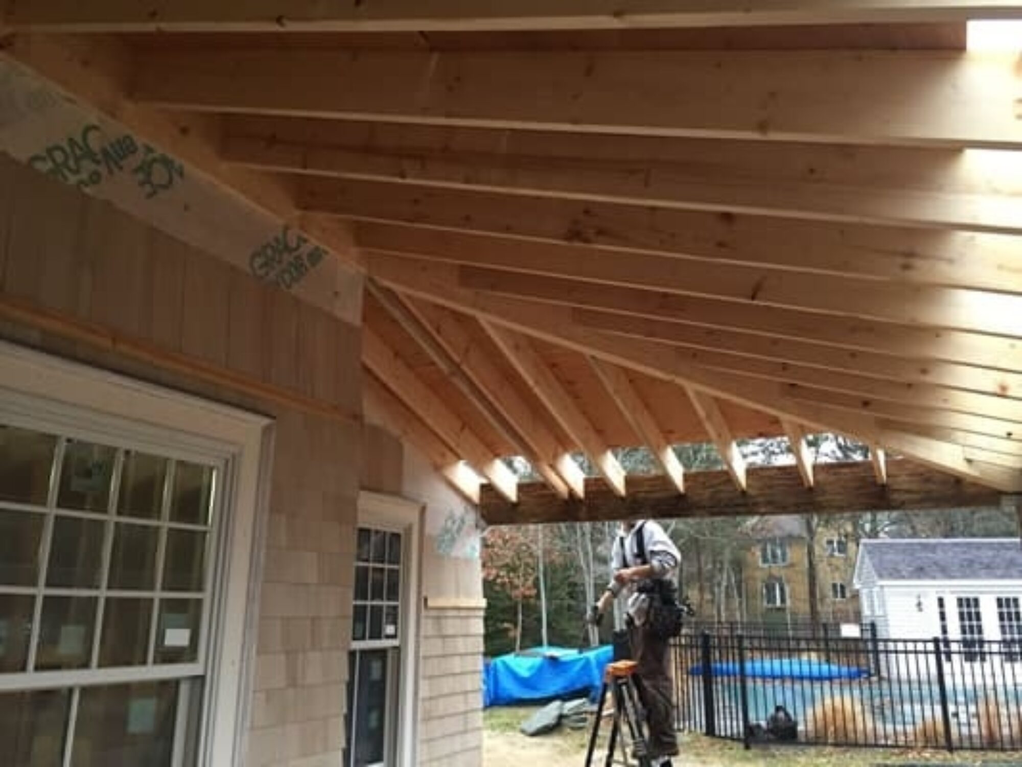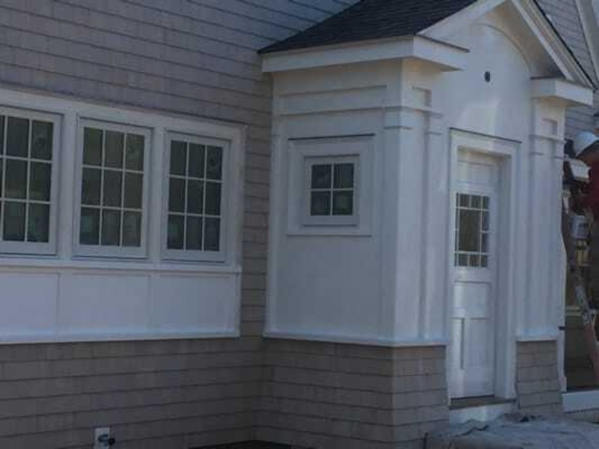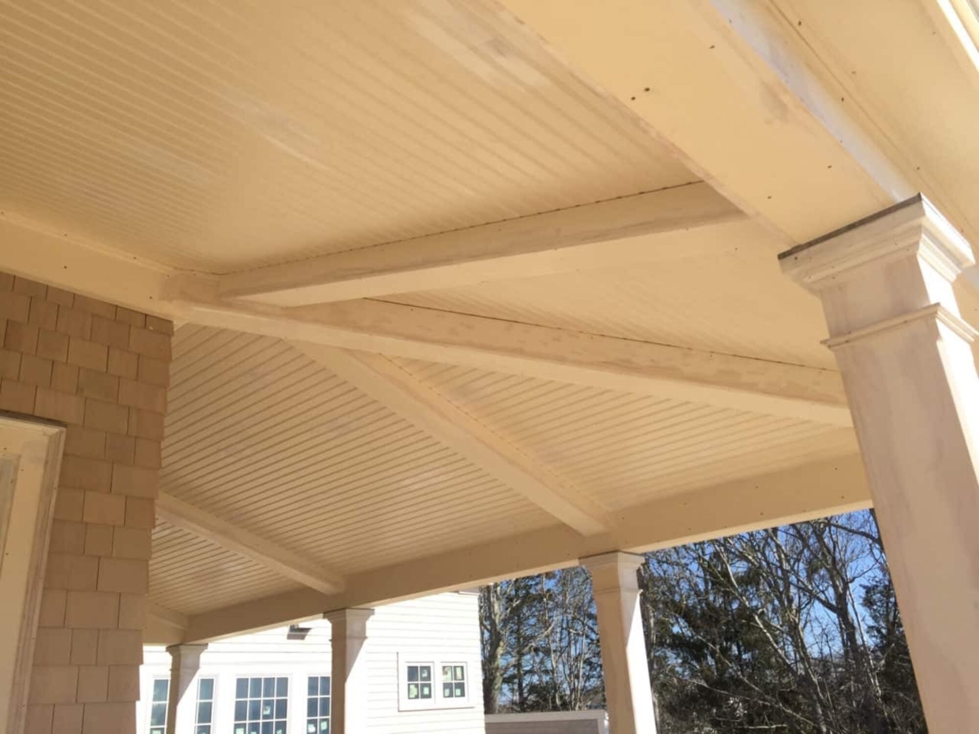 We built a four season sun-room, all new porches supported on case columns with beadboard ceilings and cased ceiling beams